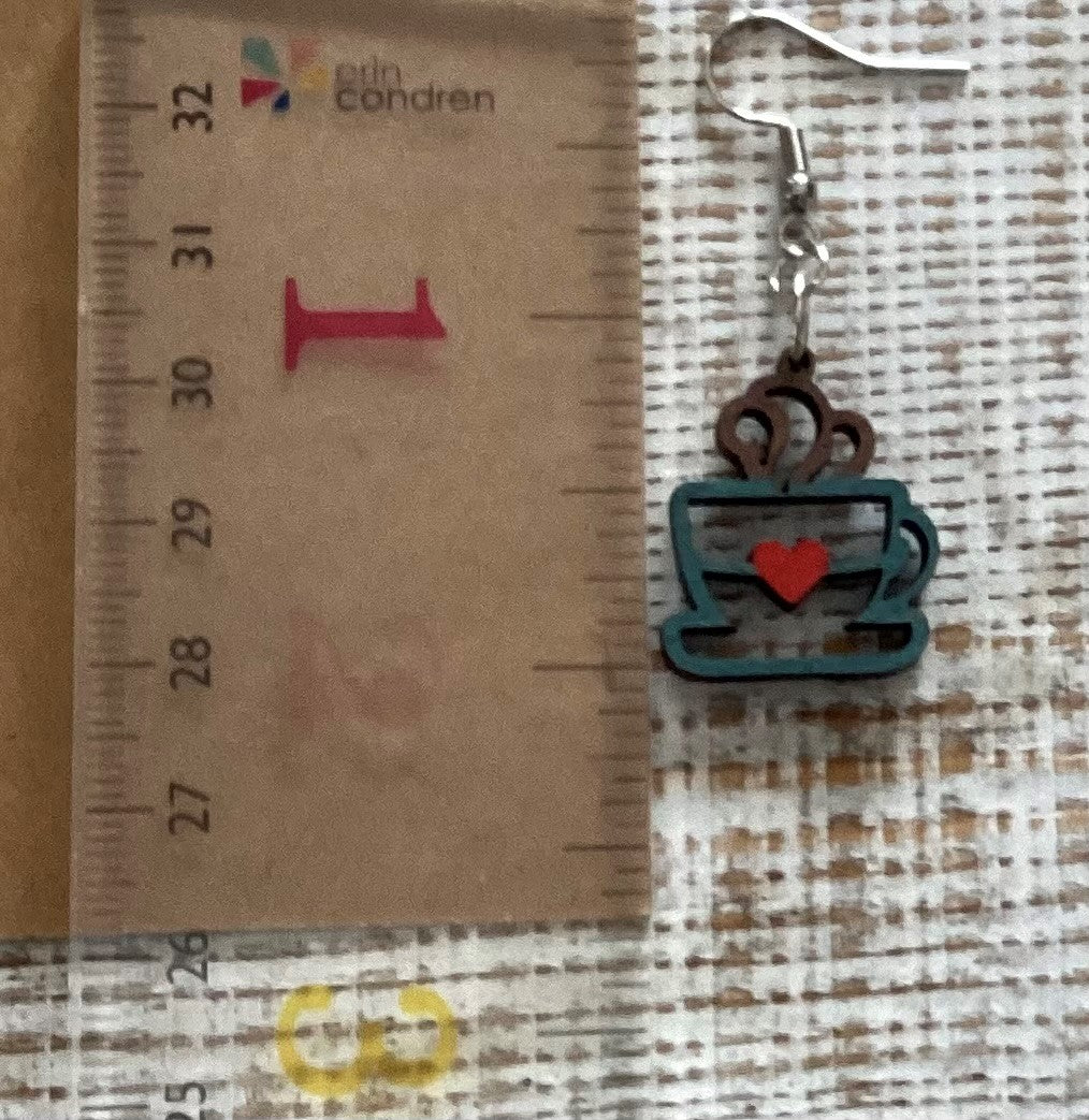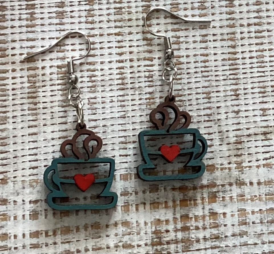 Lightweight wood dangle earrings that measure approximately 2" long. Ear wires are hypoallergenic.