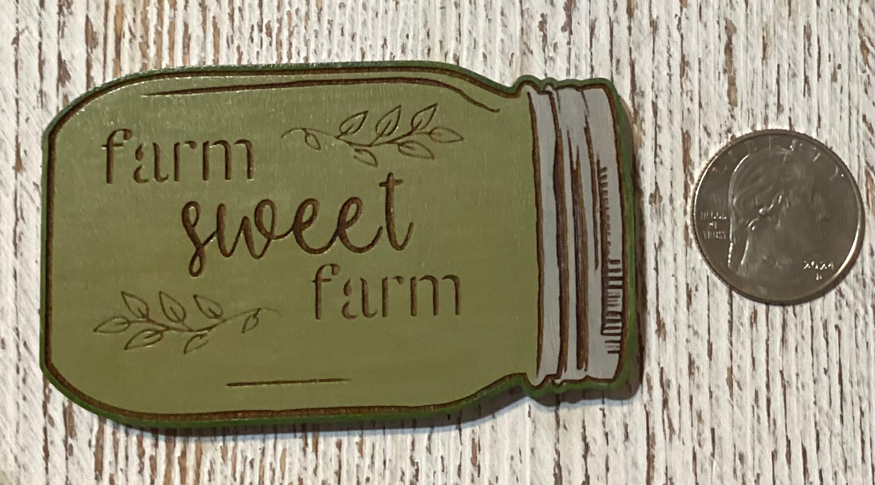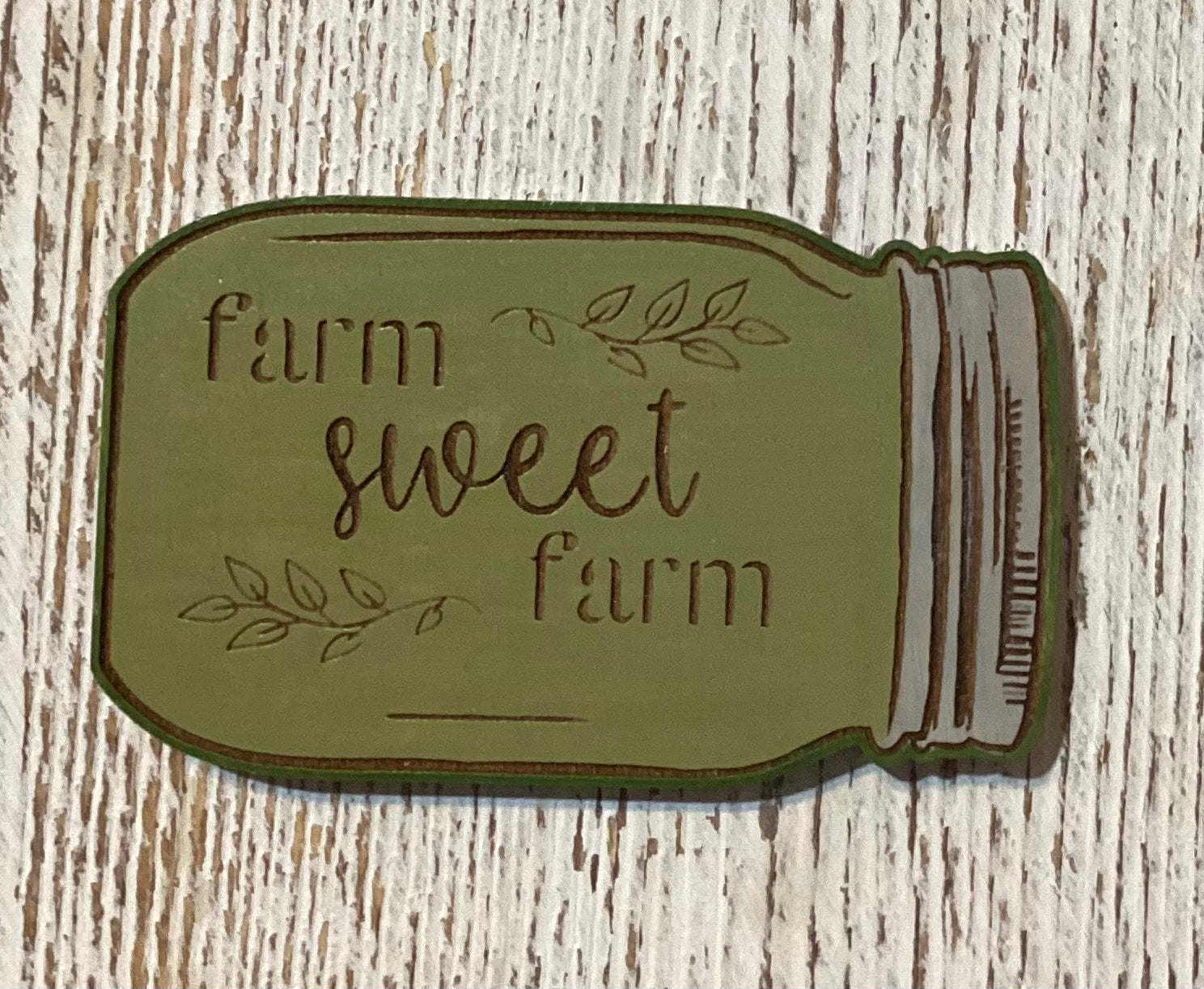 Wood painted mason jar magnet. Farm Sweet Farm