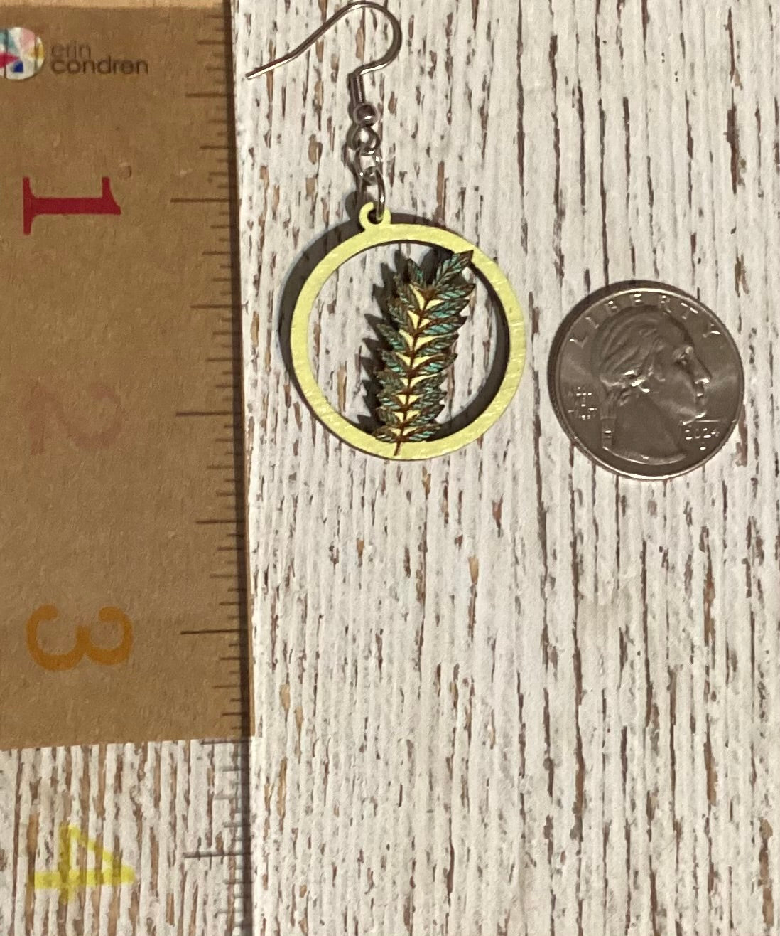 Lightweight wood dangle earrings that measure approximately 2 1/2" long.  Ear wires are hypoallergenic.
